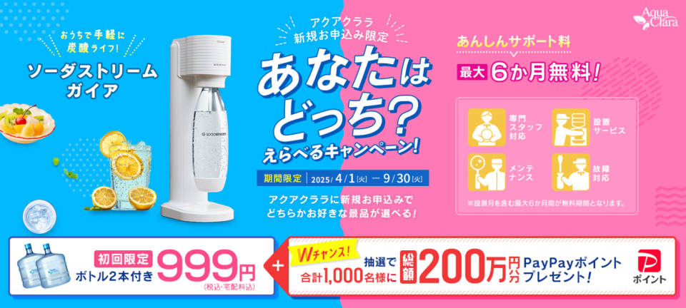 - 【えらべるキャンペーン】ソーダストリームorあんしんサポート料最大6ヶ月無料!