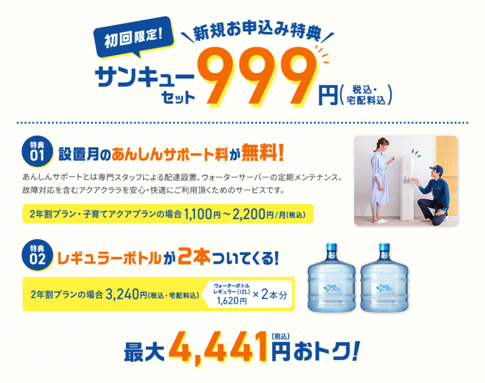 サポート料とお水12L×2本があわせて999円になります。